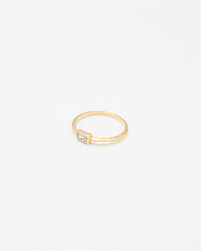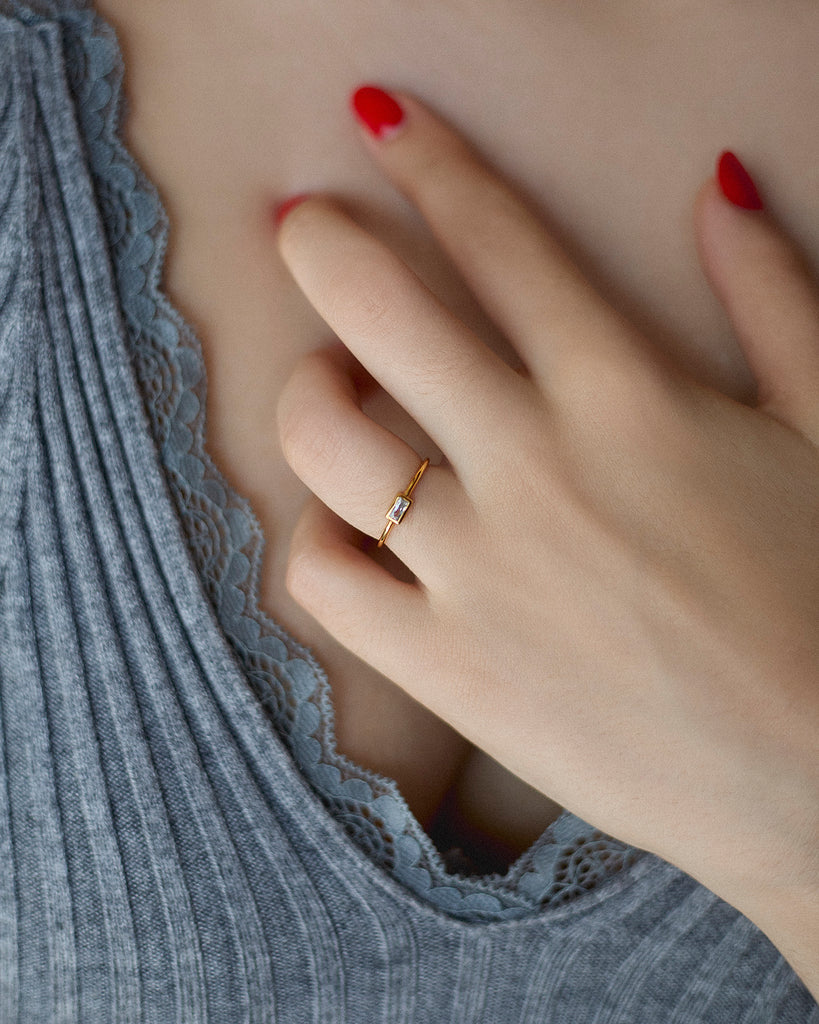 Anel fino com uma pedra zircónia em formato retangular na parte superior. É um óptimo anel para oferecer a uma pessoa especial!