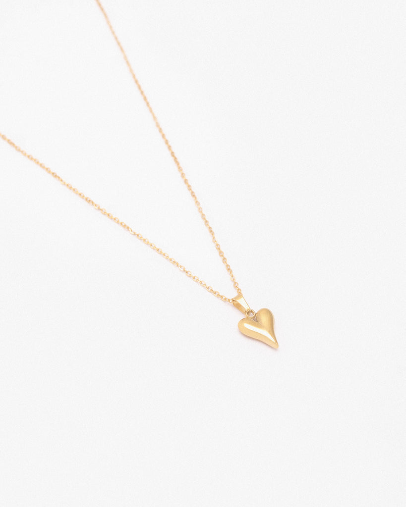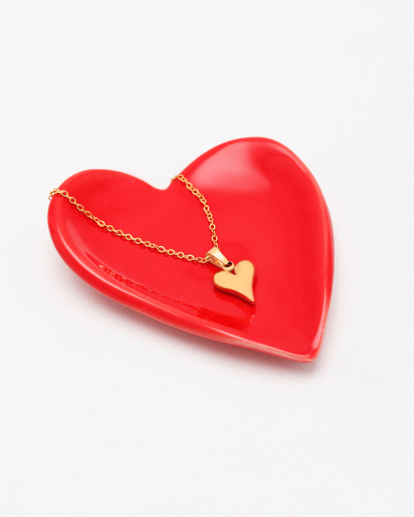 Colar com uma malha simples e com um pendente em forma de coração. Indicado para qualquer tipo de look e ocasião.